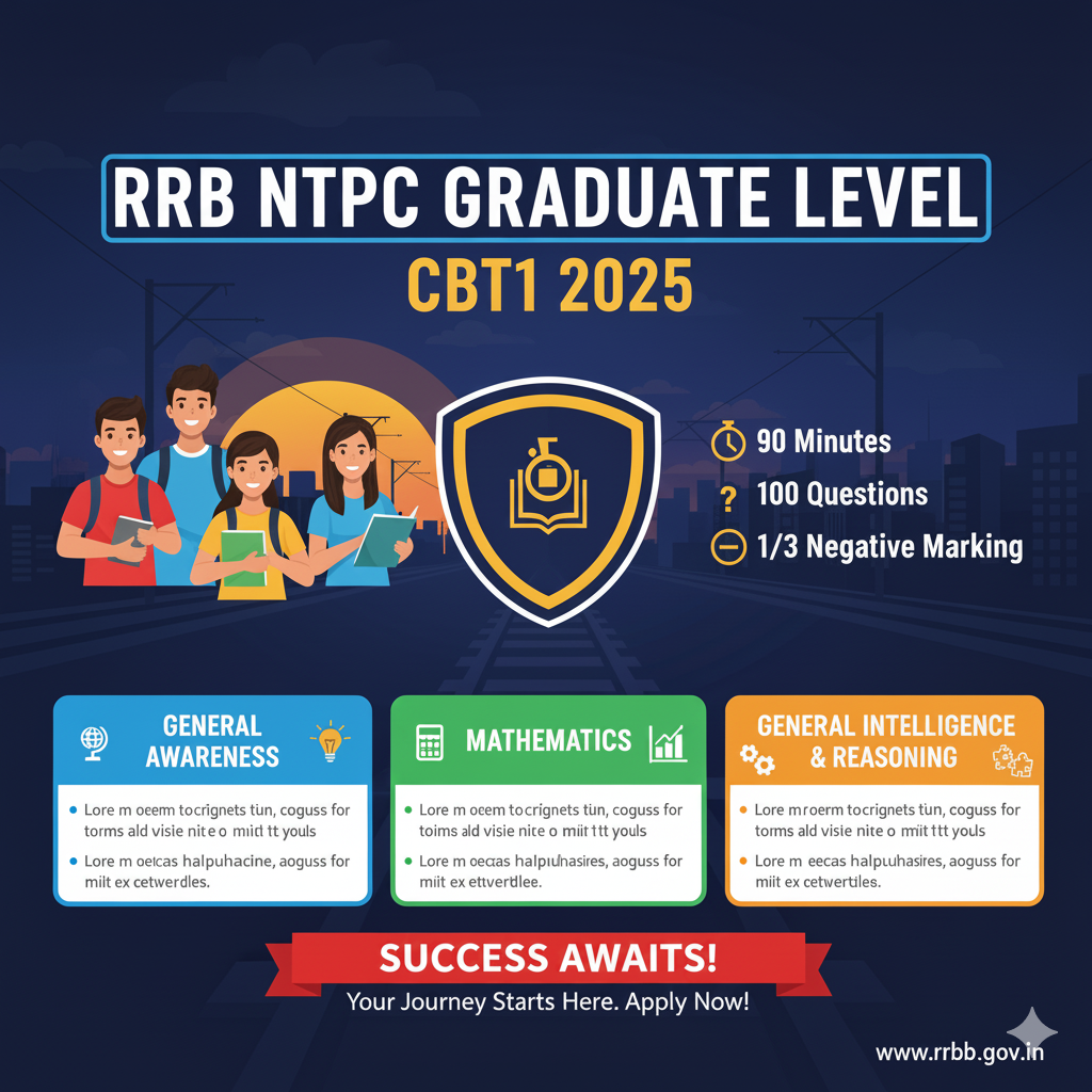 Railway Recruitment Board (RRB) Non-Technical Popular Categories (NTPC) Graduate Level CBT-1 exam ki naye pattern par aadharit, yeh test series aapki taiyari ko 100% exam-ready banati hai. Har mock test real exam environment, time limit, aur negative marking scheme ke anusaar design kiya gaya hai. Practice karein aur apni speed, accuracy, aur time management skills ko behtar banayein.